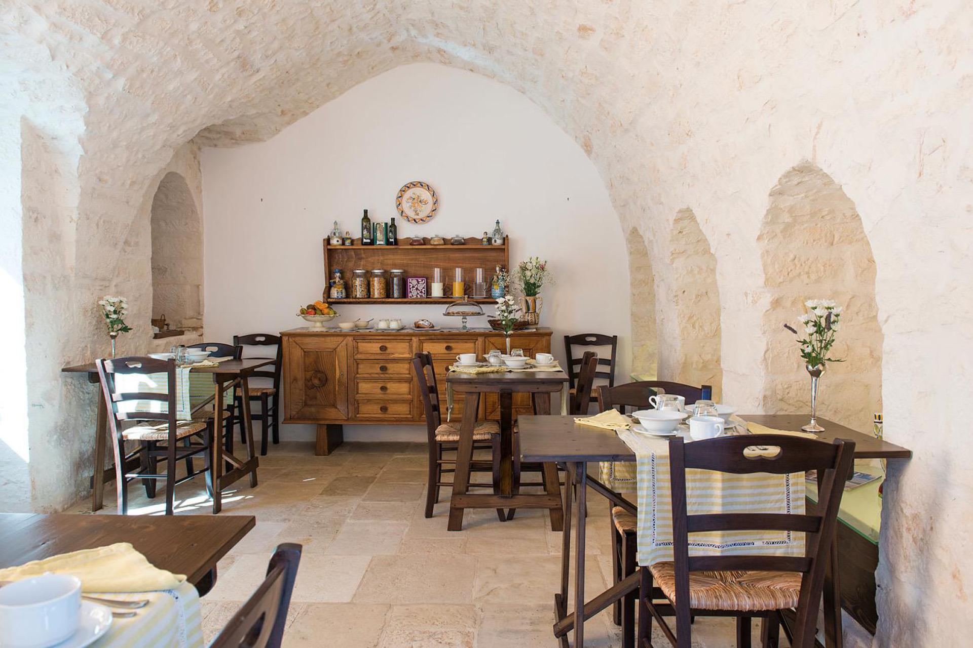 Diese Unterkunft besteht aus charakteristischen und authentischen Trulli aus dem 17.Jahrhundert, die im Jahr 2005 komplett restauriert wurden. Es gibt vier Suiten, die alle im Erdgeschoss liegen. Die Familiensuite besteht aus einem Wohnbereich mit kleiner Kochnische und einem Schlafzimmer im Erdgeschoss sowie einem zweiten Schlafzimmer im ersten Stock. Von diesem Schlafzimmer aus hat man direkten Zugang auf die Dachterrasse des Trullo (für kleine Kinder nicht geeignet!). Die anderen Suiten sind für 2 -3 Personen geeignet. Alle Suiten sind mit LCD TV und privatem Badezimmer mit Fön ausgestattet.