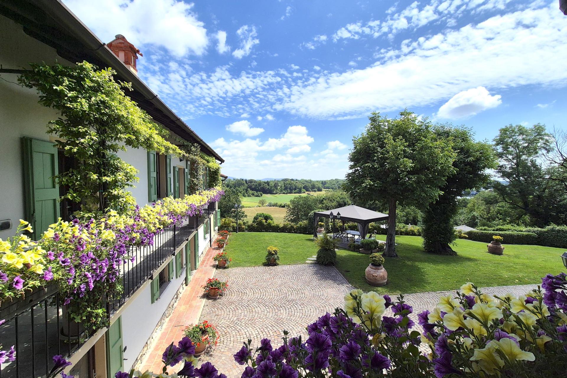 Das Landhaus liegt in einem weitläufigen, gepflegten Garten mit Bäumen und schattigen Wegen, ein schöner Ort, um Zeit im Freien zu verbringen. Der Pool ist mit Liegen und Sonnenschirmen ausgestattet und eignet sich hervorragend, um nach einem Besichtigungstag zu entspannen, ohne das Anwesen verlassen zu müssen.