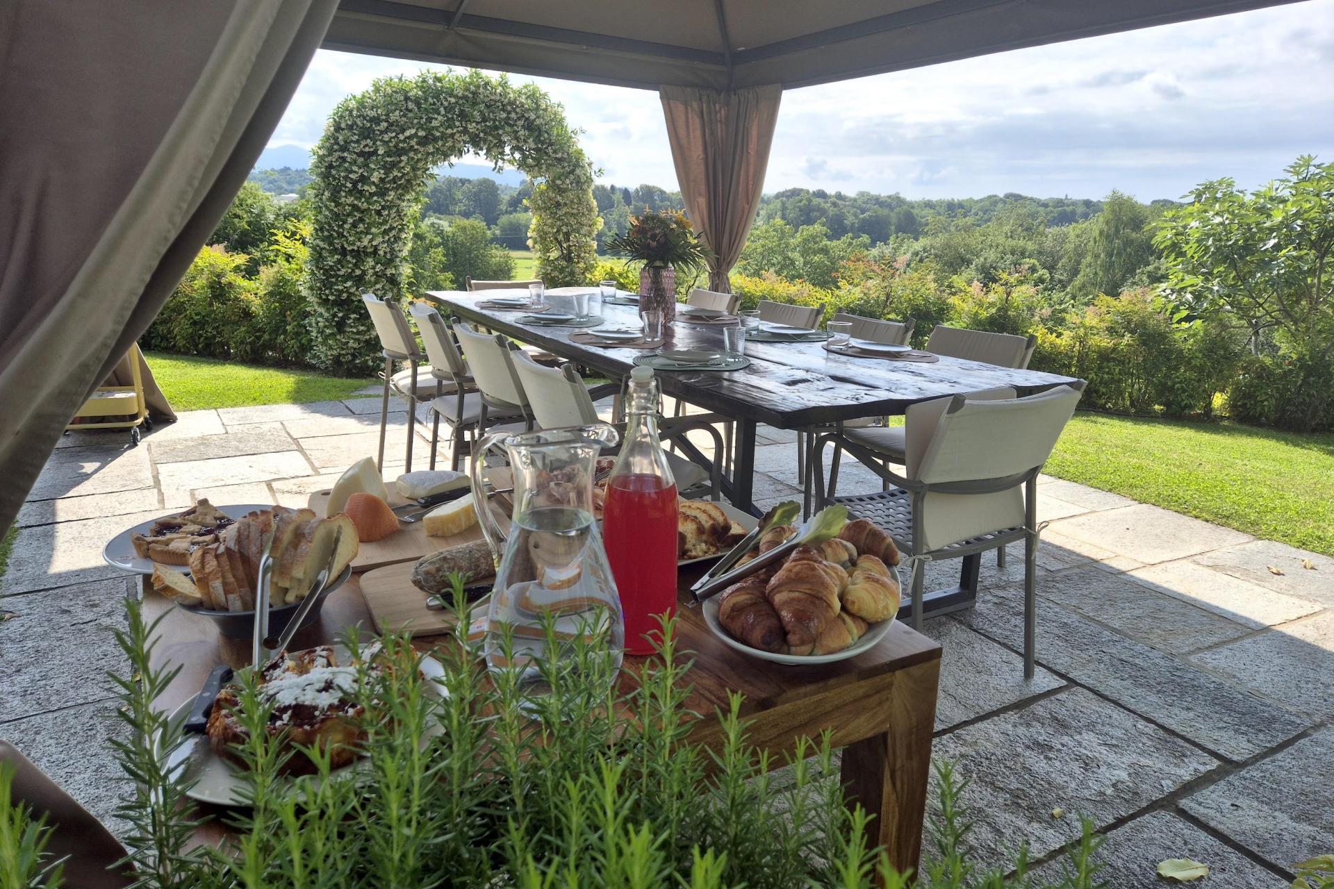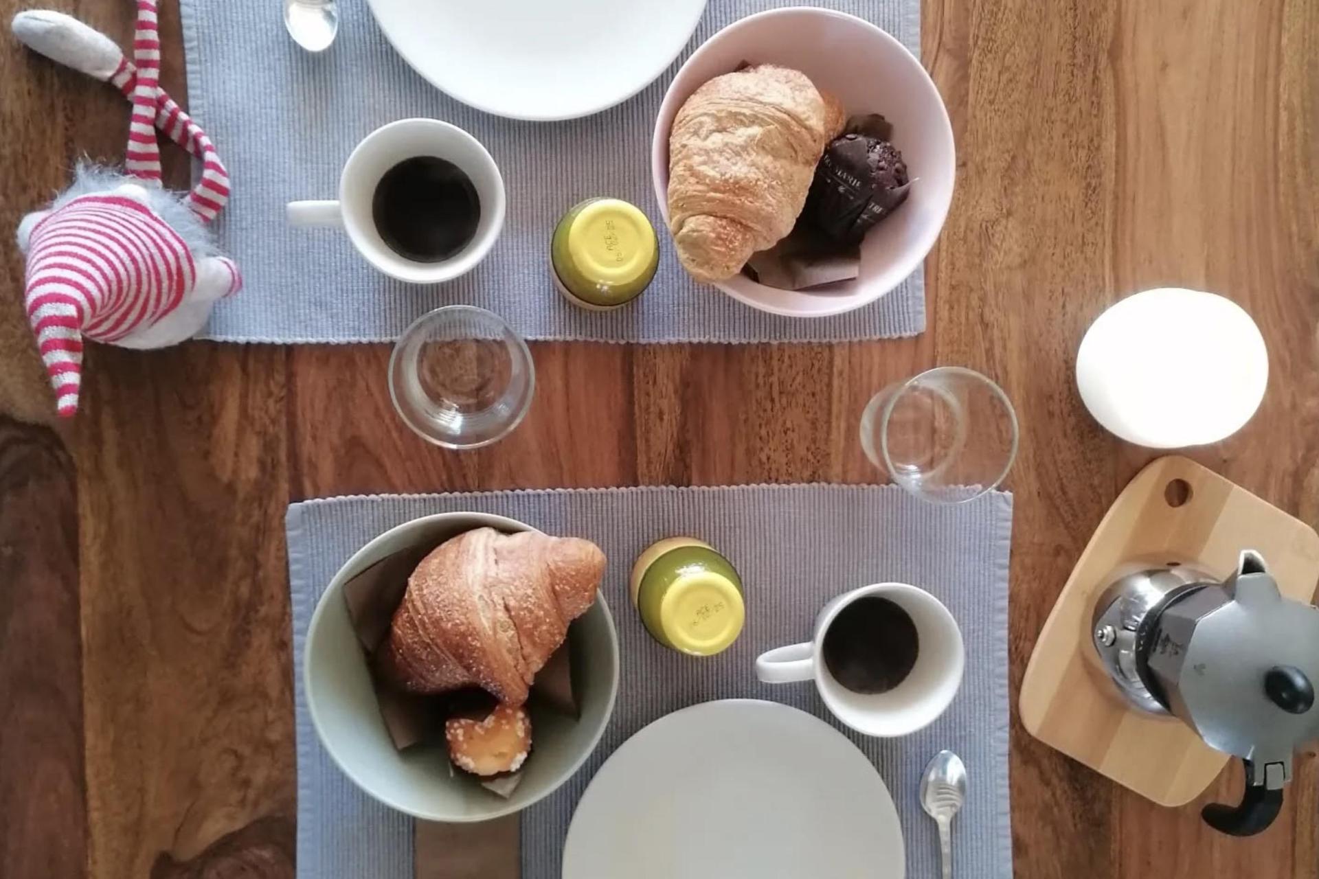 Die sechs Zimmer verfügen alle über ein eigenes Bad und sind schlicht, harmonisch und im Landhausstil eingerichtet. Die Räume sind hell und einladend. Es gibt Doppelzimmer und familienfreundliche Lösungen mit getrennten oder verbundenen Bereichen — ideal für Reisende mit Kindern. Das Frühstück ist liebevoll und reichhaltig: hausgemachte Kuchen, frisches Brot, Konfitüren, saisonales Obst und herzhafte Optionen für alle, die kräftig in den Tag starten möchten. In der schönen Jahreszeit wird das Frühstück draußen serviert, mit Blick ins Grüne in entspannter, authentischer Atmosphäre.