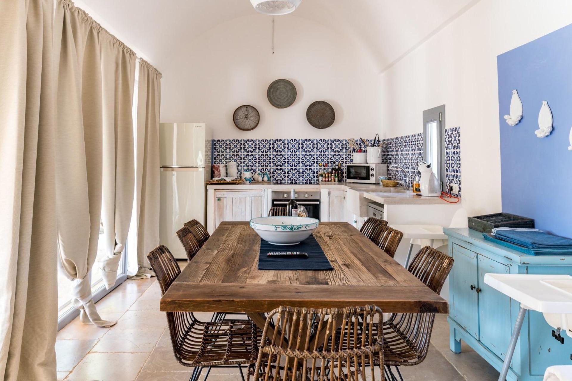 Der Trullo liegt in der Nähe von Ostuni, der bekannten „Weißen Stadt“, wo man durch stimmungsvolle Gassen schlendern und von den Terrassen den Blick über die Olivenhaine bis zum Meer genießen kann. Auch Cisternino ist gut erreichbar: ein gemütlicher Ort mit schönen Plätzen, kleinen Handwerksläden und einer authentischen Atmosphäre – ideal für einen Abendspaziergang oder einen Aperitivo unter Einheimischen.