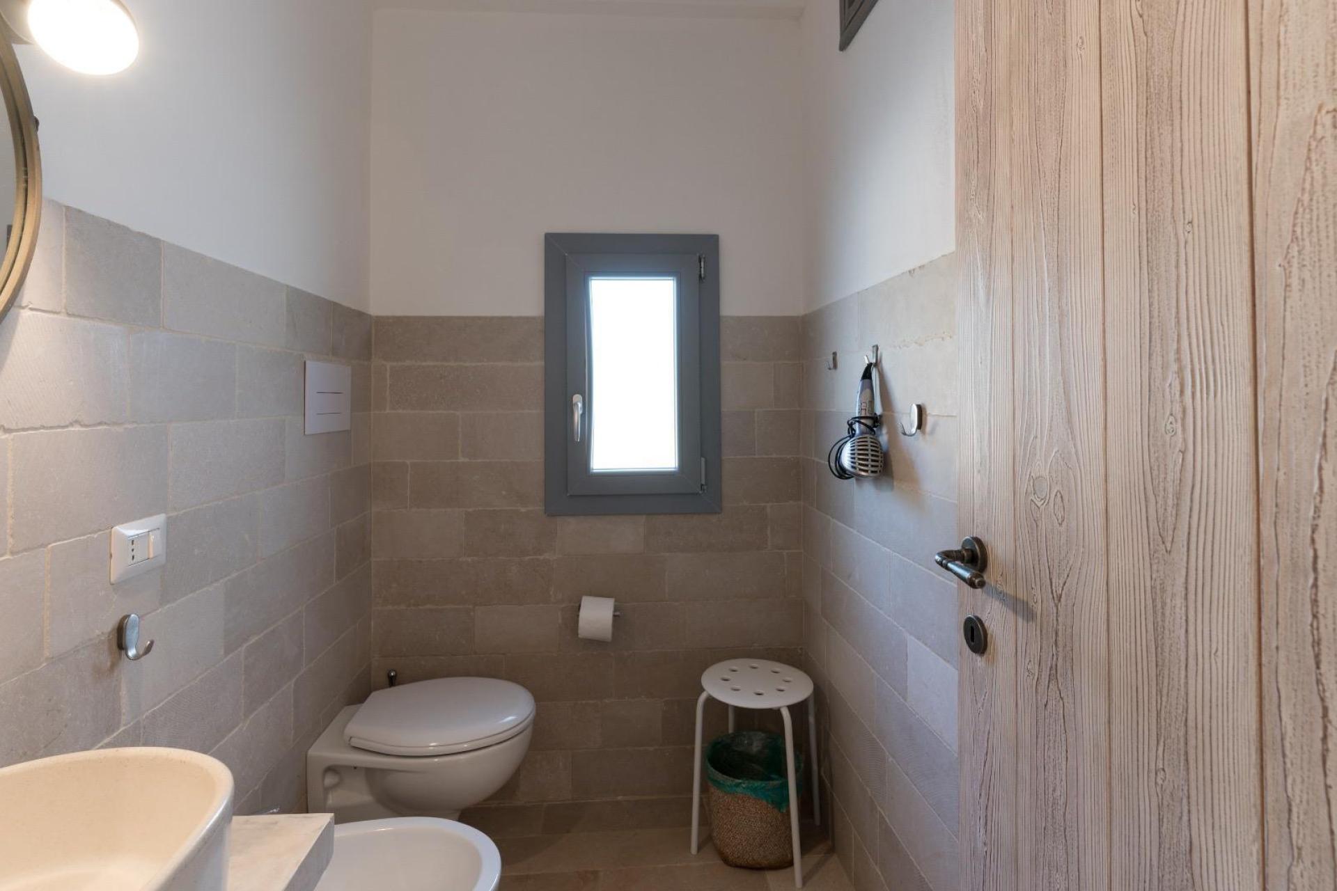 Daneben, separat vom Trullo, steht eine sogenannte Lamia – ein für diese Region typisches Steingebäude – mit einem Wohnzimmer mit Sofa, einer kleinen Küche mit Geschirrspüler, zwei Doppelzimmern und zwei Bädern mit Dusche.