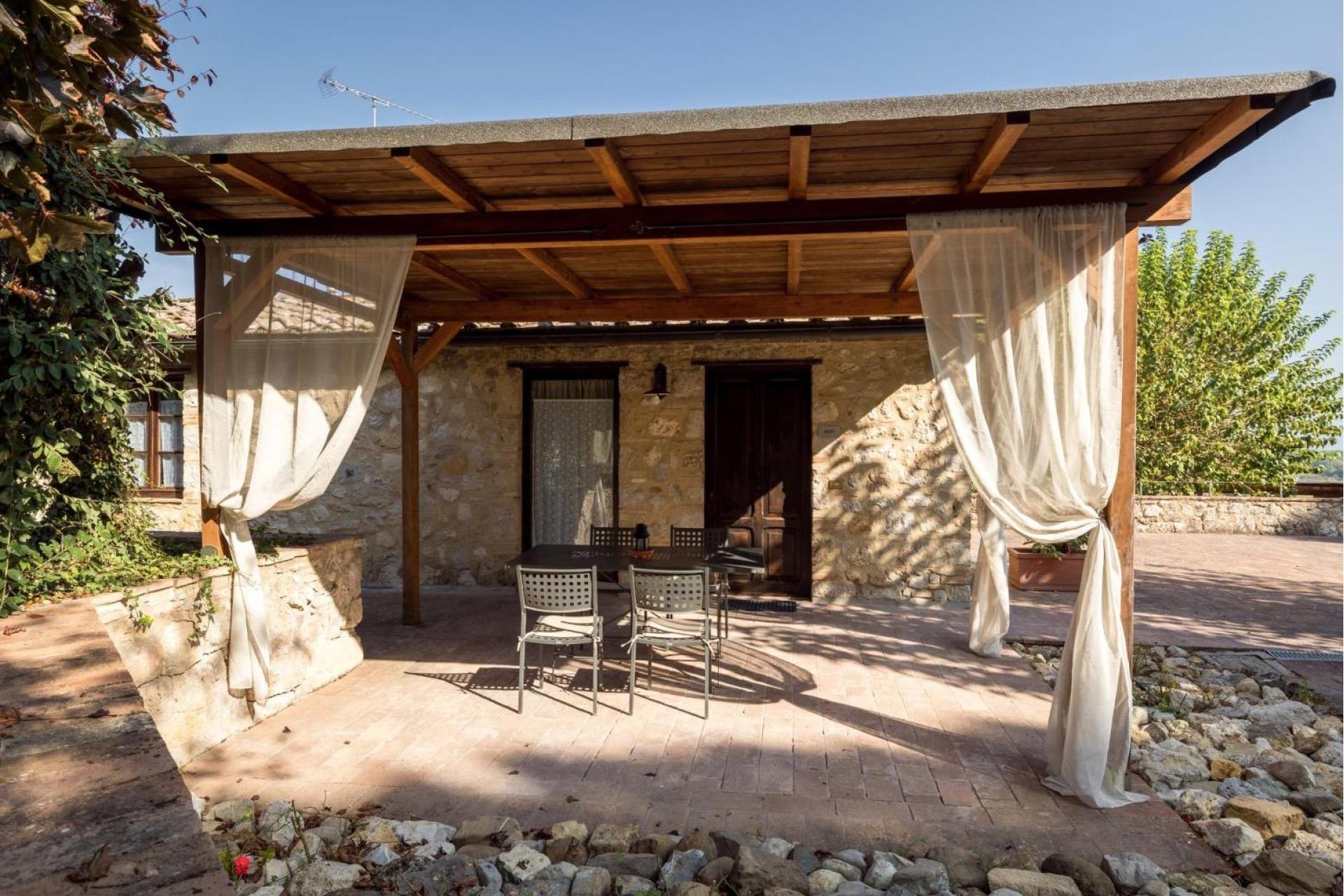 Der Agriturismo verfügt über einen Pool von 11 x 8 m mit Sonnenterrasse mit Stühlen und Sonnenliegen sowie einen Garten. Der Agriturismo bietet somit viele Möglichkeiten zur Entspannung. Es gibt auch eine gemeinsame Waschmaschine und Wlan auf dem Gelände. Wobei das Wifi nur in den Gemeinschaftsbereichen funktioniert.