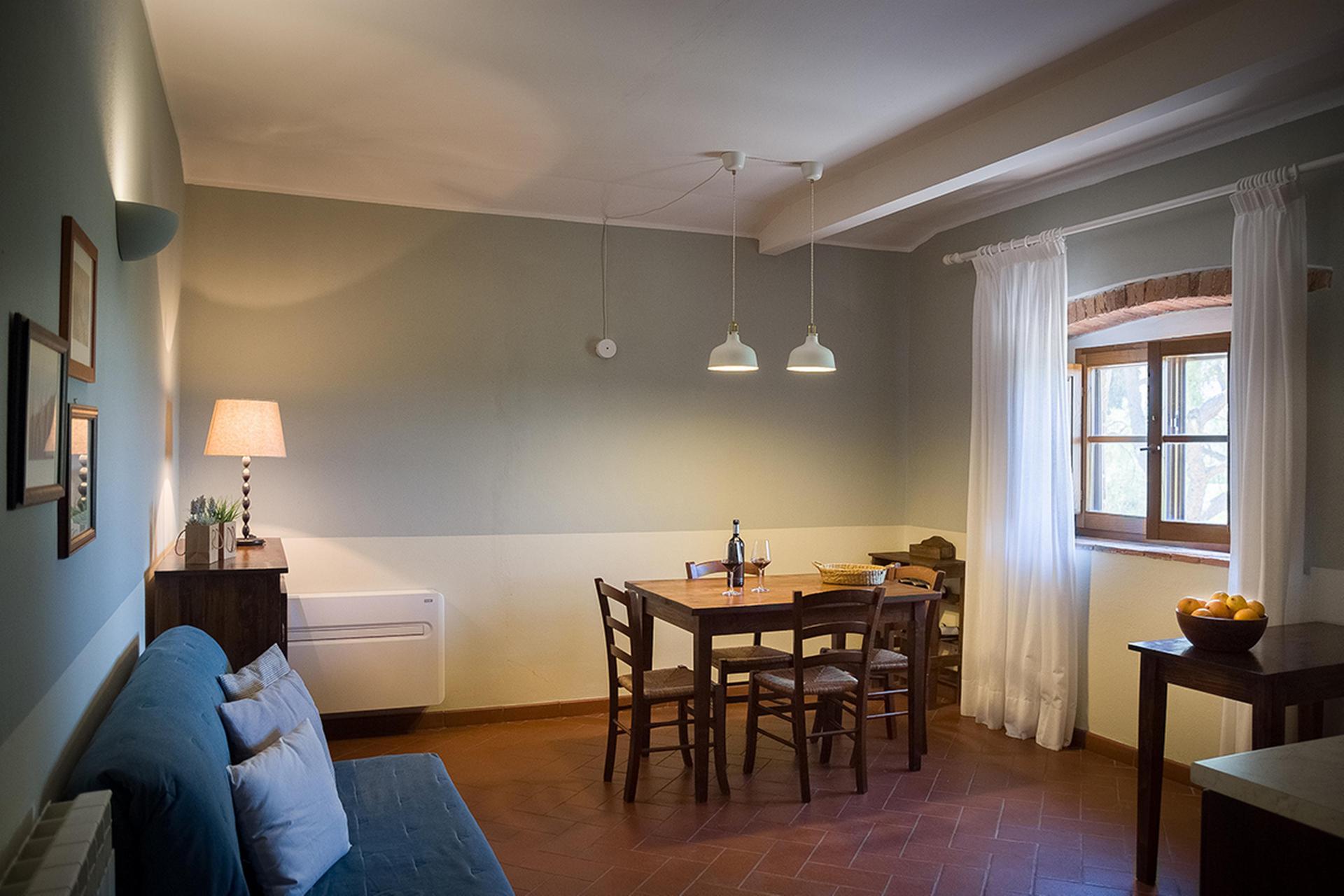 Der Agriturismo verfügt über acht Apartments, die den authentischen toskanischen Stil mit warmen Farben und natürlichen Materialien beibehalten. Jedes Apartment hat eine eigene Terrasse oder einen Patio mit Tisch und Stühlen. Am Pool hat jedes Apartment seinen eigenen Bereich mit Liegestühlen und Sonnenschirm. Die Apartments sind mit Klimaanlage, TV, einer Küche mit 4-Flammen-Gasherd, Mikrowelle und zum Teil auch mit Geschirrspüler und Backofen ausgestattet.