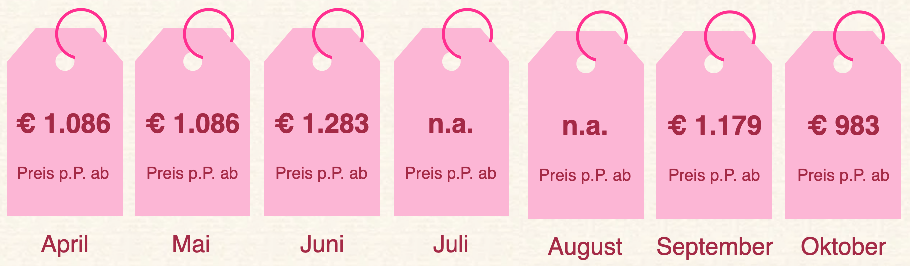 Ab-Preis p.P. für 14 Übernachtungen, nur Unterkunft